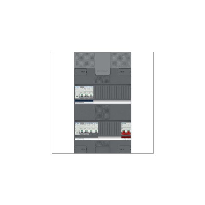 Installatiekast, 390x220x110mm, 1-fase, Beveiliging: Installatie-/aardlekautomaat, 4 groepen, Hoofdschakelaar: 2-polig, 40A, 2x aardlekschak. 30mA, Kookgroep: 1-fase, Kunststof behuizing, IP20,