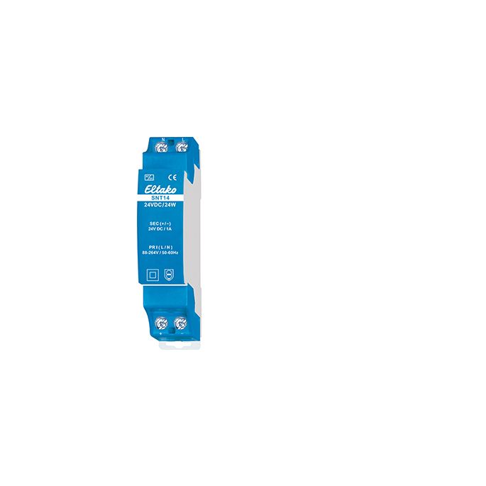 ELTAKO, SNT14-24V/24W, DC-DC GestabiliseerdeGelijkstroom voeding, Pri 230V DC, Sec 24VDC 1A, 24W, (BxHxD) 18x58x58mm, IP20, Autorecovery