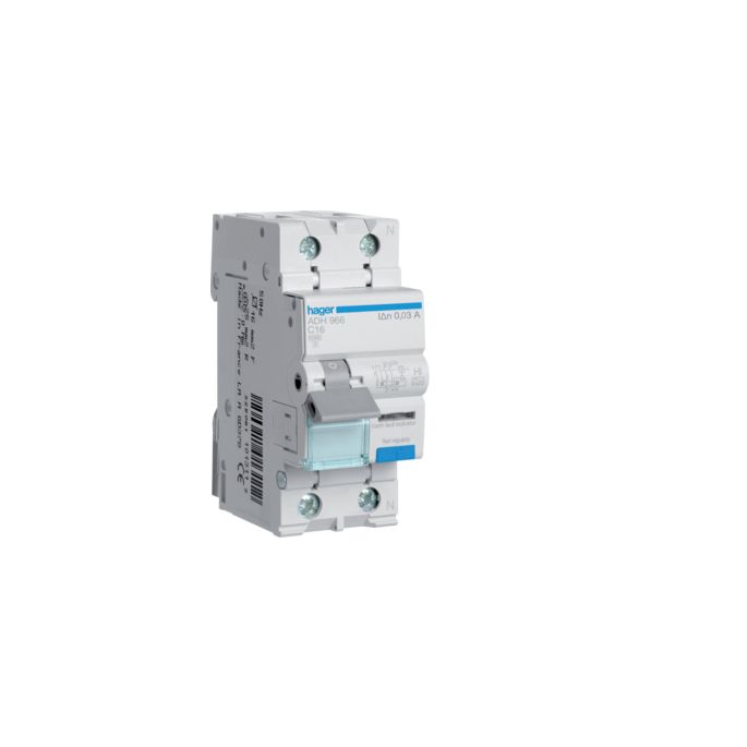 Hager aardlekautomaat / 1-polig + nul, 30mA, C16A / ADH966