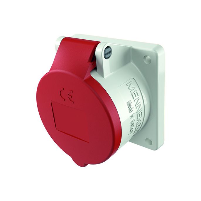 MENNEKES, CEE 1797, Contactdoos Ceeform Aanbouw, 32A, 5-polig, 400 V (50+60 Hz) rood, Uurstand 6h, IP44, Kunststof, Recht, Schroefloze klem, Flens: 75x75mm, Boorgat: 60x60mm, 75x75mm, boorgaten 60x60mm