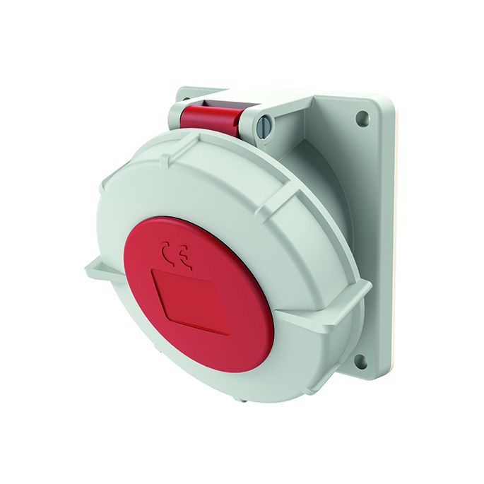 MENNEKES, CEE 1808, Contactdoos Ceeform Aanbouw, 32A, 5-polig, 400 V (50+60 Hz) rood, Uurstand 6h, IP67, Kunststof, Schuin (gehoekt), Schroefloze klem, Flens: 92x100mm, Boorgat: 77x85mm, Schuin 20gr., 100x92mm, boorgaten 77x85mm