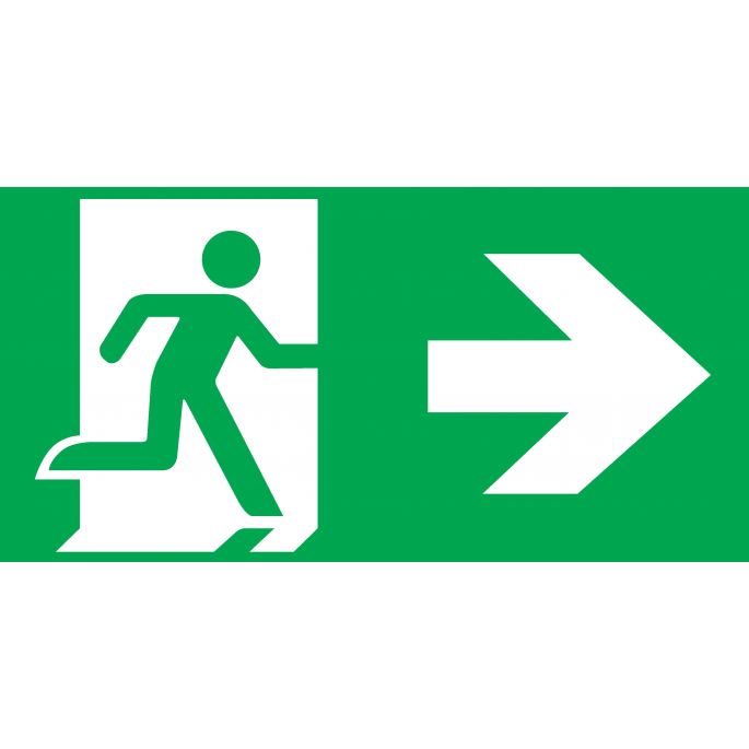 Pictogram noodverlichting, Sticker, Vluchtweg, Rechts, 300x150mm, Herkenningsafstand: 30m,