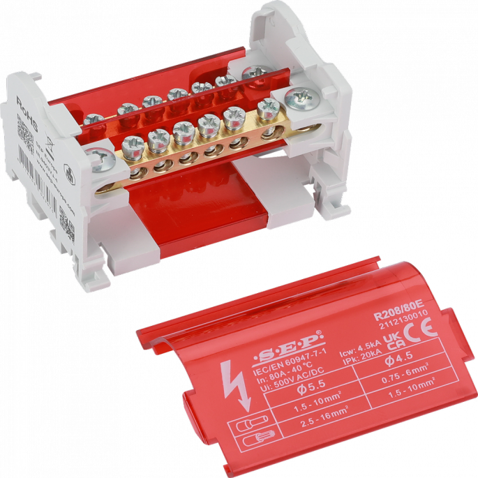 SEP R208/80E verdeelset 80A, 2p, 8x aansl, 500VAC/DC