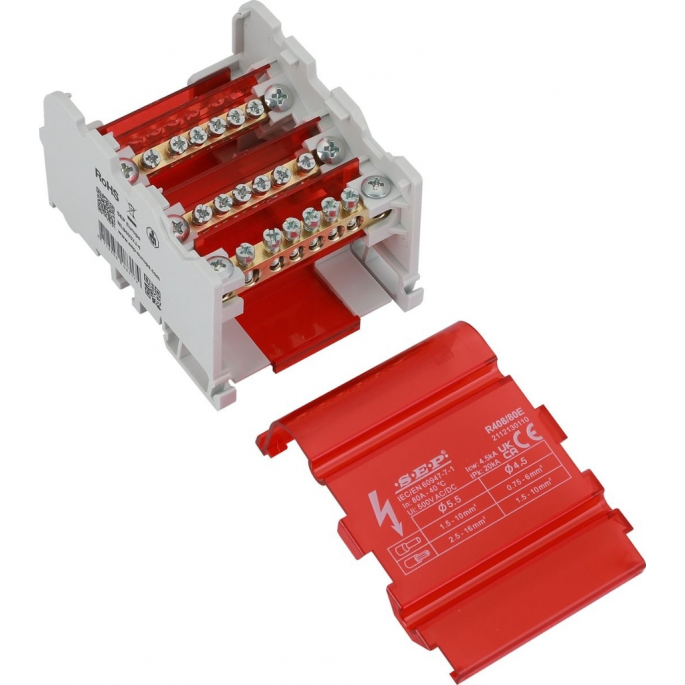 SEP R408/80E verdeelset 80A, 4p, 8x aansl, 500VAC/DC
