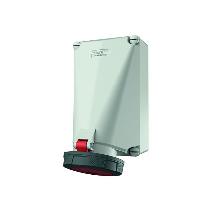 MENNEKES, CEE 143, Wandcontactdoos Ceeform, 125A, 5-polig, 380-415 V (50+60 Hz) rood, Uurstand 6h, IP67, Kunststof, Schroefklem, Met Binnenliggende bevestiging, 1x invoer boven, 1x invoer onder (blind), M50