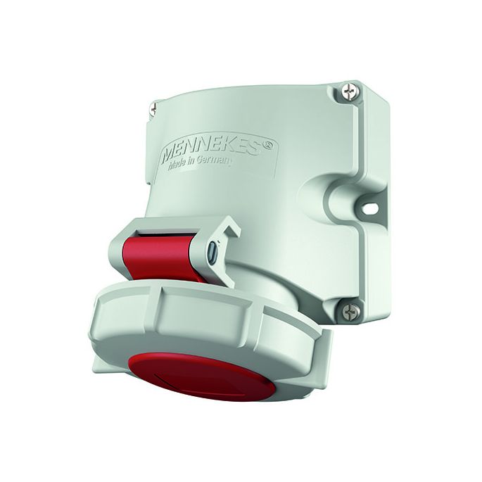 MENNEKES, CEE 9142, Wandcontactdoos Ceeform, 16A, 5-polig, 380-415 V (50+60 Hz) rood, Uurstand 6h, IP67, Kunststof, Schroefloze klem, Met Buitenbevestiging, 1x invoer boven, 2x invoer onder (blind), M25