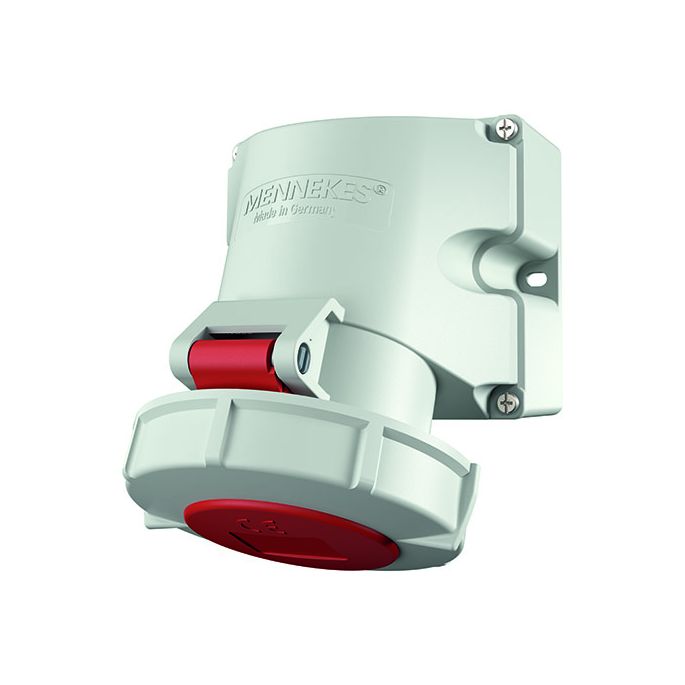 MENNEKES, CEE 9182, Wandcontactdoos Ceeform, 32A, 5-polig, 380-415 V (50+60 Hz) rood, Uurstand 6h, IP67, Kunststof, Schroefloze klem, Met Buitenbevestiging, 1x invoer boven M32, 2x invoer onder (blind), M25